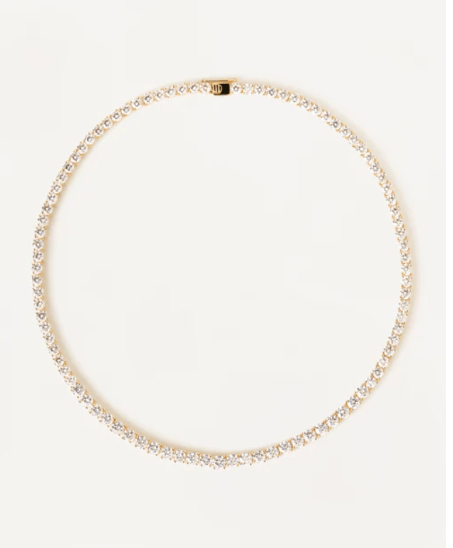El collar es el Collar Tennis Supreme de PDPAOLA, si, esa firma con la que colabora María Pombo. El éxito ha sido tan fuerte que el collar estuvo agotado algunos días, pero ya hay nuevo stock y puedes hacerte con ello por 419,00€.