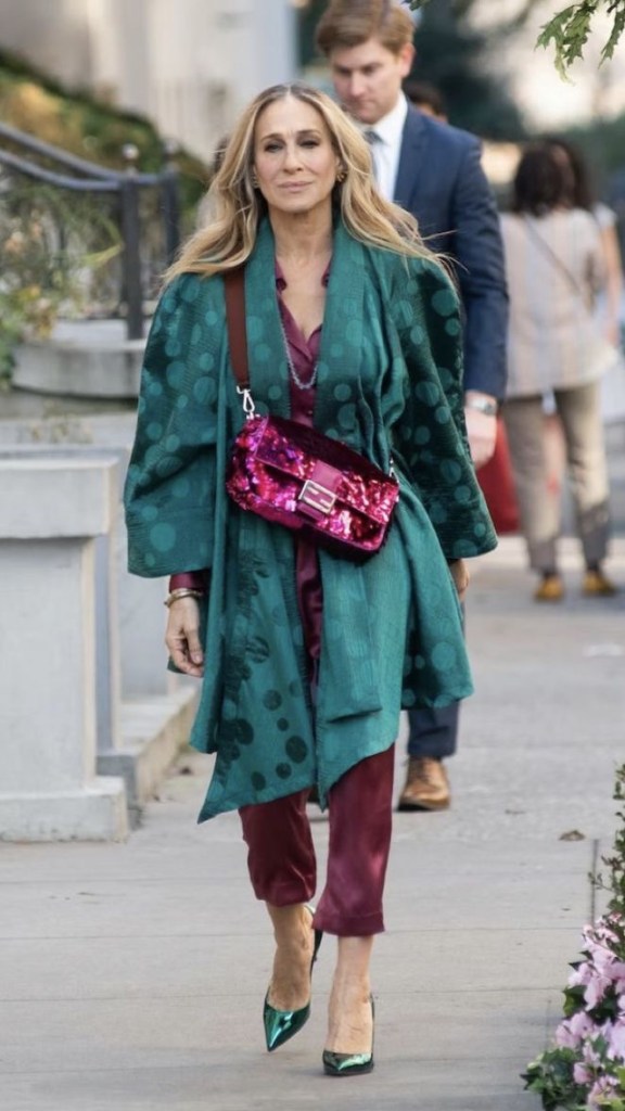 La Baguette de Fendi es una cartera de tamaño pequeño que se lleva bajo el brazo como si fuera una barra de pan, de ahí su nombre. Carrie Bradshaw popularizó este accesorio al llevarlo en múltiples episodios de “Sex and the City”. Diseñada por Silvia Venturini Fendi, la Baguette se convirtió en un fenómeno de la moda, gracias en gran parte a su aparición en la serie. En uno de los capítulos de la serie, la pobre Carrie se pierde y al ir a preguntar por la dirección correcta le roban todas sus posesiones. El atracador le dice «Dame tu bolso» y ella, pese a la situación solo puede responder «es una baguette».