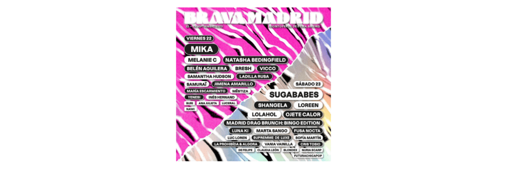 El festival, que se llevará a cabo el viernes 22 y sábado 23 de Septiembre, contará con actuaciones de artistas de renombre mundial, incluyendo a Loreen, última ganadora de Eurovisión, Belén Aguilera, María Escarmiento, Fusa Nocta, Vicco, Mika, Melanie C, Sofía Martín… Además de la música en vivo, los asistentes podrán disfrutar de BRESH, Drag Brunch, Dresscode show y dj set de Luc Loren e Ines Hernand.