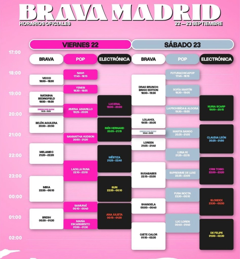 Para los amantes de la música electrónica, el escenario ELECTRÓNICA será el lugar donde encontrarán los ritmos más vibrantes y las luces brillantes durante toda la noche. El escenario POP será el epicentro de actuaciones en vivo que seguramente dejarán a la multitud con recuerdos inolvidables y el escenario BRAVA con actuaciones memorables como la de Belén Aguilera o Loreen.