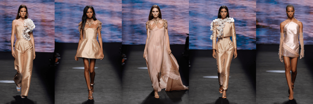 Bajo el nombre de ‘ÉTER’ encontramos la nueva colección de Alta Costura primavera-verano 2024 de Claro Couture. Una colección inspirada en los cinco elementos de la antigua cosmología griega (tierra, agua, aire, fuego y el «éter») con connotaciones de pureza y divinidad.