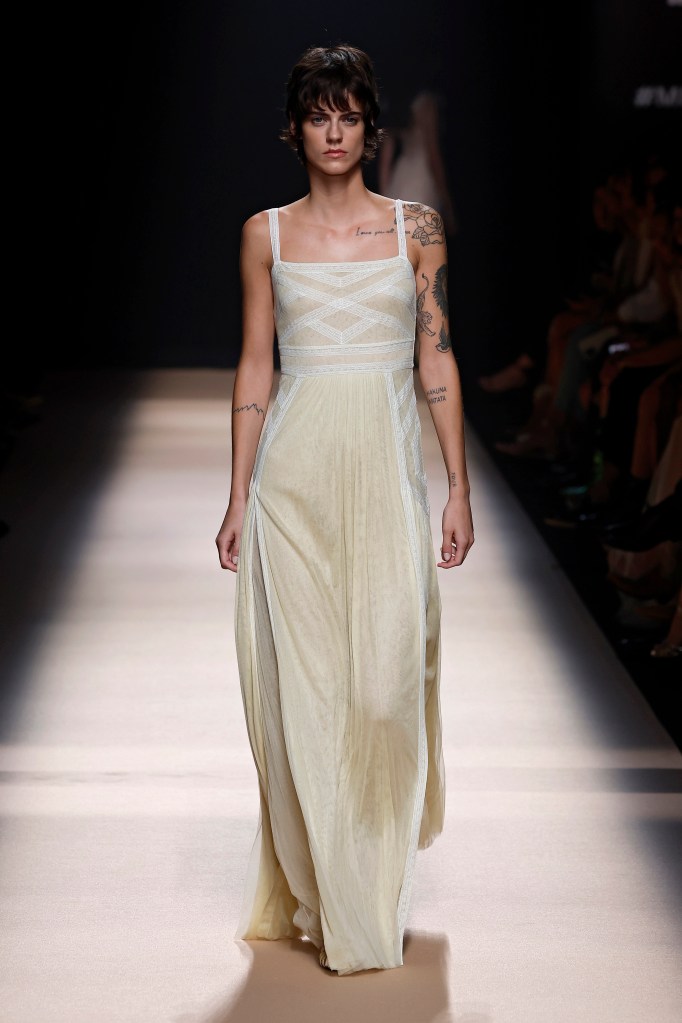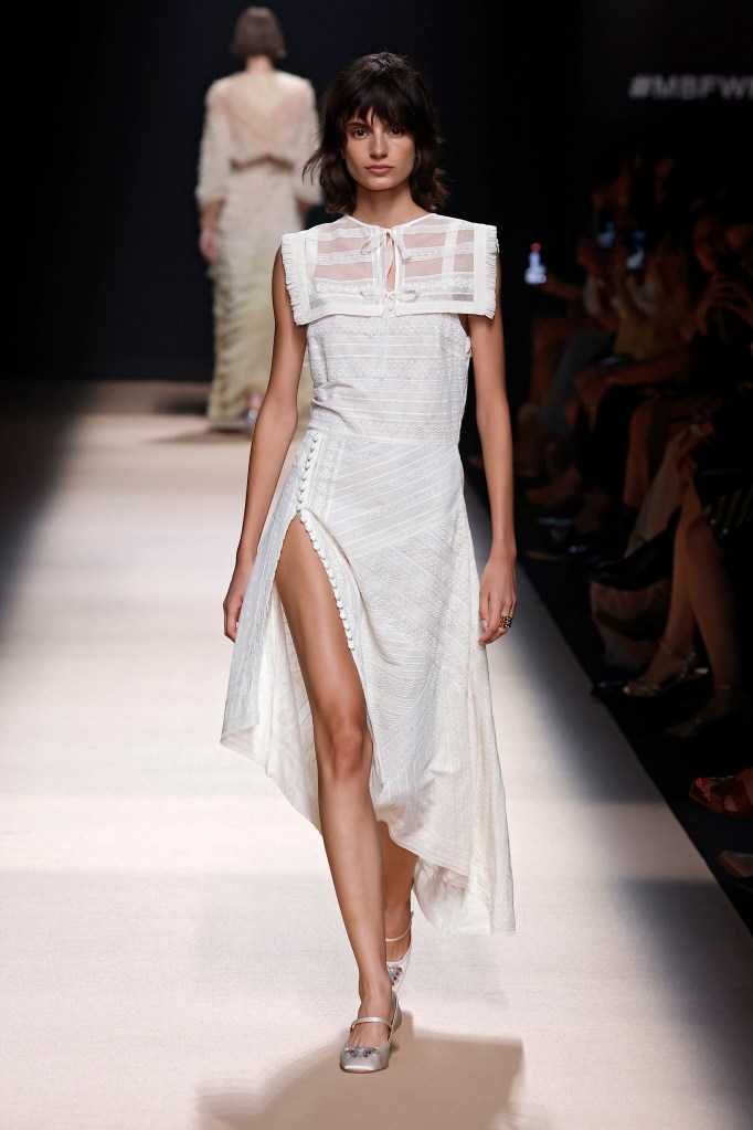 “Paris Texas”, como se llama la nueva colección, está representada por colores marrones y blancos. Con texturas de tules de seda, de algodón, cuero desgastado y puntillas. No faltan las mangas cortas abullonadas, costuras en relieve, bordados hechos a mano, blusas románticas y las faldas cortas.