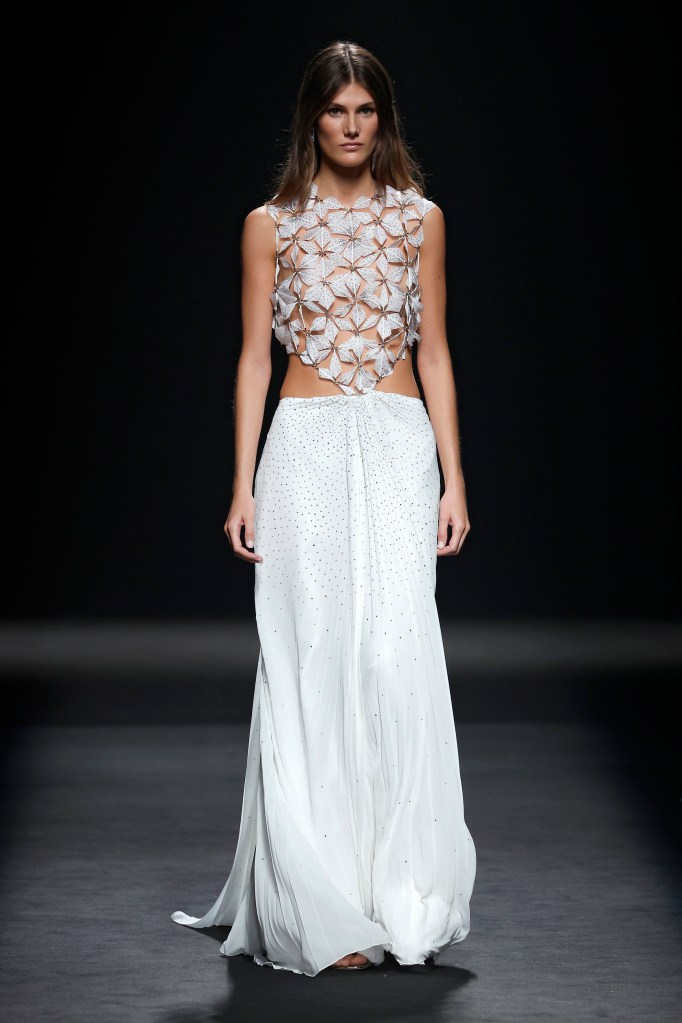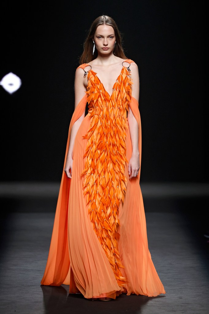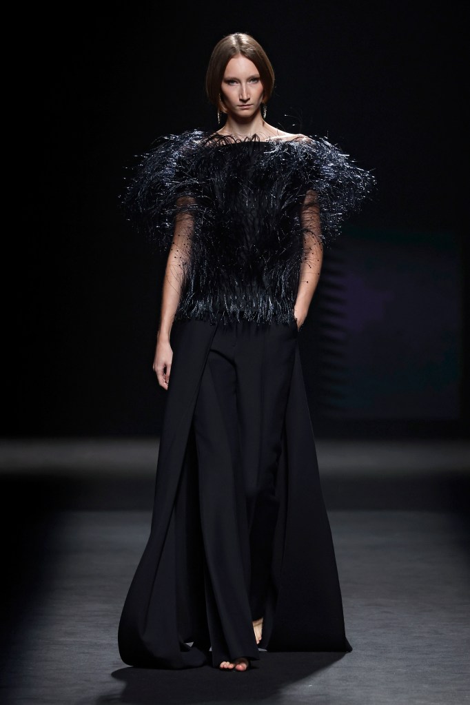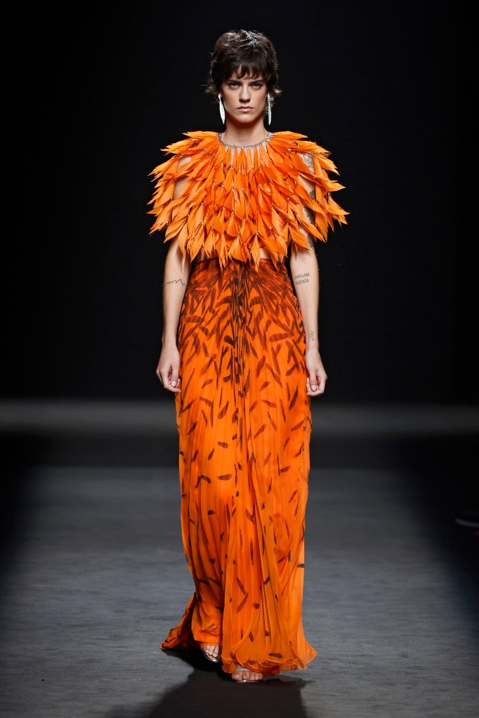 En esta colección han querido mostrar el empleo del volumen y la importancia de la silueta femenina. El objetivo principal de esta nueva colección es crear piezas especiales con efectos artesanales con la intención de enamorar. El elemento de la pluma está presente en gran parte de la colección en sedas estampadas, en pintados manuales y nuevas técnicas aplicadas en cuerpos y vestidos.