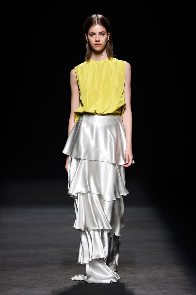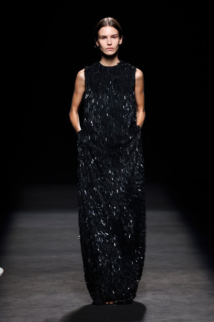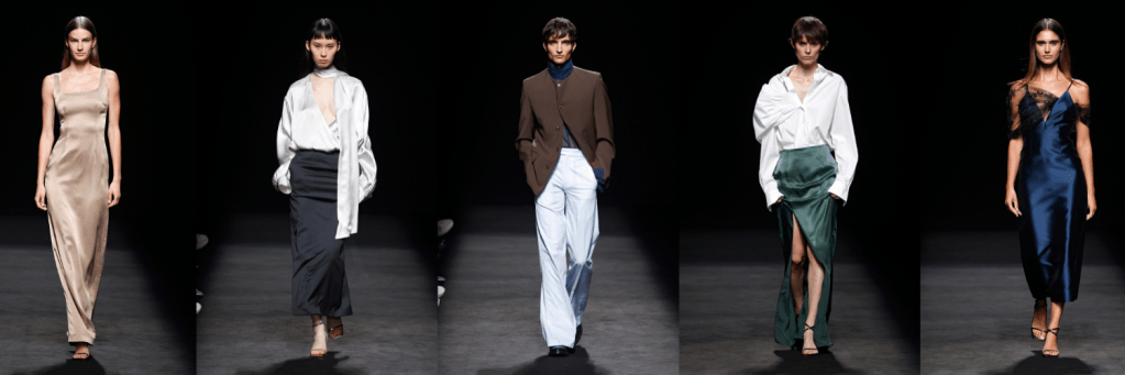 Los colores neutros y oscuros han sido uno de los protagonistas de la pasarela, la mayoría de todos los looks iban acompañados de un tonalidad blanca. En esta nueva línea podemos encontrar multitud de texturas que reflejan.