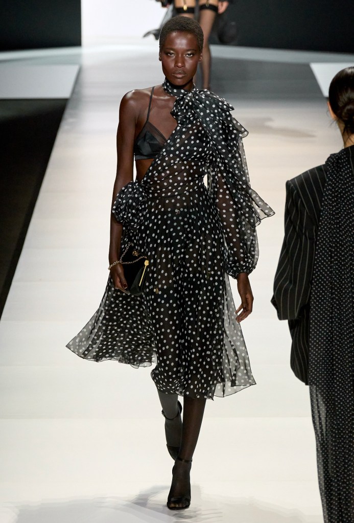 Los lunares, las lazadas y las transparencias han sido los principales elementos del desfile de Dolce & Gabanna en la Fashion Week de Milán. El binomio blanco y negro estubo presente en todos los looks que desfilaron por la pasarela.
