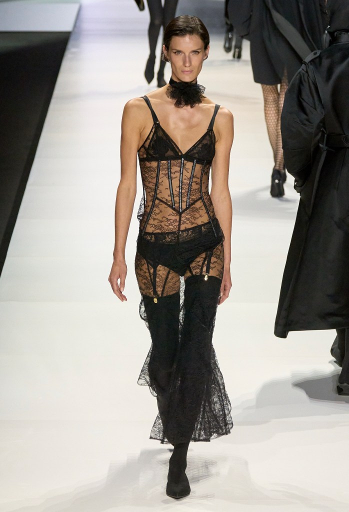 Las viudas fueron las protagonistas y de ellas salieron las novias, aunque la única que vimos era una combinación de corsé transparente, medias, faja y velo.