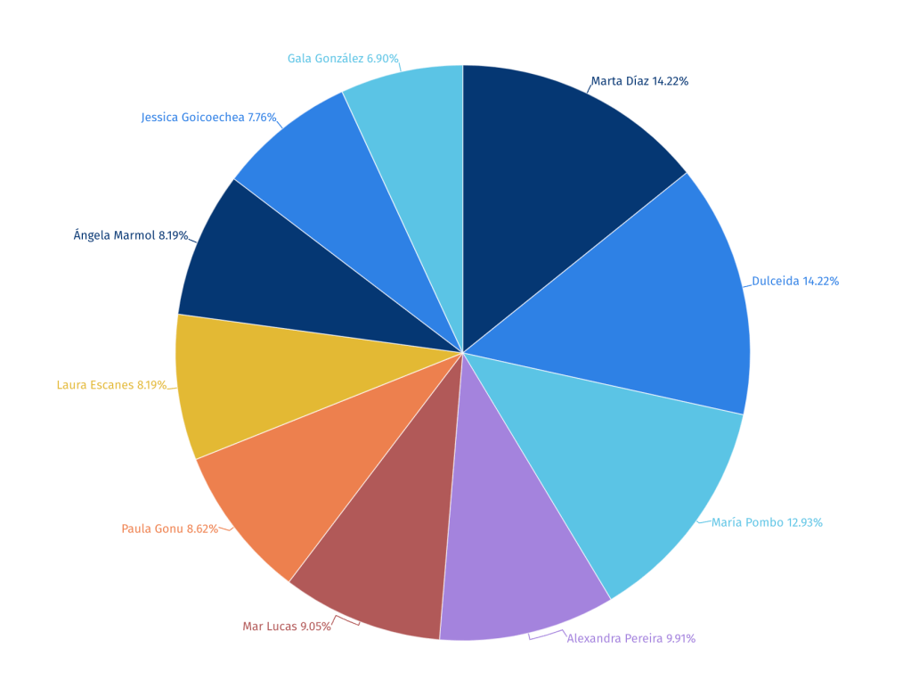 La red que ha generado mayor interacción en este año ha sido Instagram a pesar de experimentar un decrecimiento de -8%, seguido de TikTok que incrementa sus resultados en +13%. Cabe destacar el ascenso de LinkedIn y el decrecimiento de Facebook.